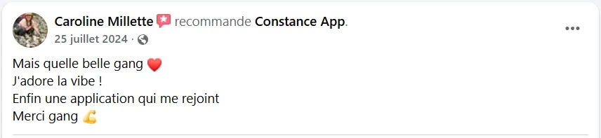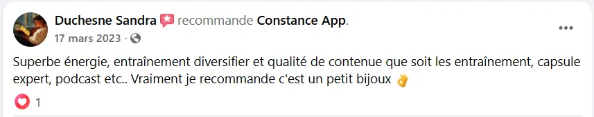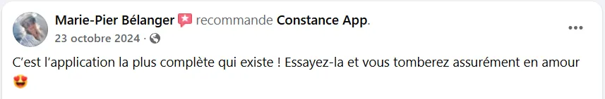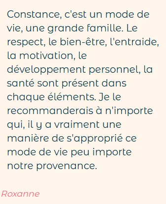 Constance a une version gratuite pour que tu puisses l'essayer, et l'équipe me donne aussi un code promo pour te faire économiser et te donner une motivation de t'abonner et t'impliquer à fond.